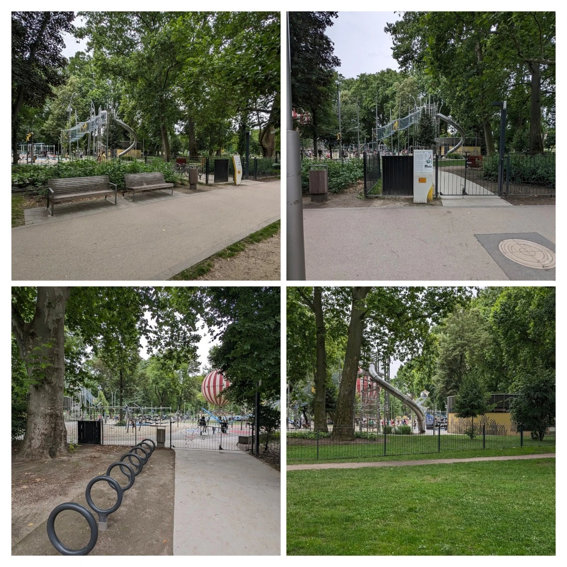 Parkolni a park előtt lévő mélygarázsban-, vagy a környező utcákban lehetséges, viszont ezek díjköteles parkolási lehetőségek.